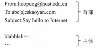 电子邮件分为 信封 和 内容 两大部分,邮件内容又分为 首部 和 主体 两部分。