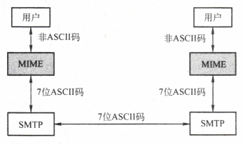 由于SMTP只能传送ASCII码邮件,为了传送其他国家文字字符,提出了多用途网际邮件扩充(MIME)。