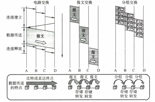 | 报文交换网络 | 数据加上源地址、目的地址、校验码等辅助信息,封装成报文 优点:充分地利用线路容量、实现传输速率的转换、格式转换、差错控制 缺点:增加资源开销、缓冲延时、缓冲区难以管理 | 存储转发网络 |