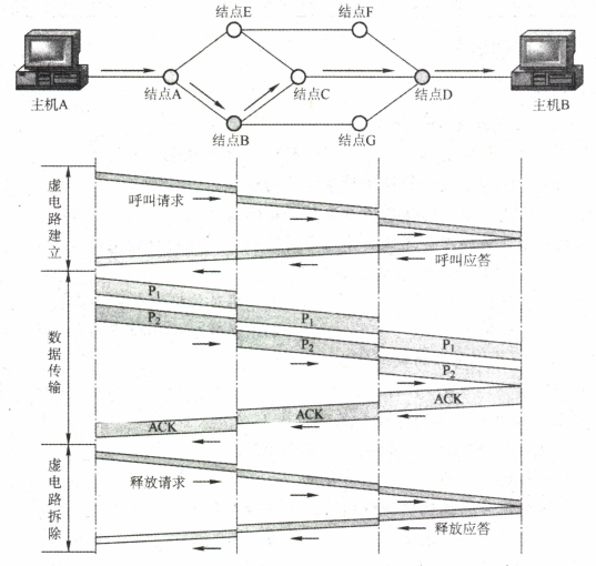 | 电路交换网络 | 专用通路;建立连接、传输数据、断开连接 优点:数据直接传送、时延小 缺点:是线路利用率低、不能充分利用线路容量、不便于进行差错控制 | 传统电话网络 |