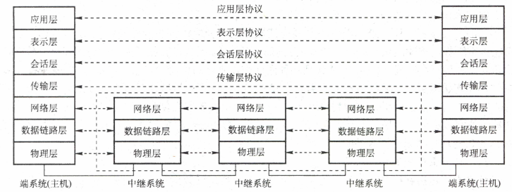 两台主机通信时,对等层在逻辑上有一条直接信道,表现为不经过下层就把信息传送到对方。